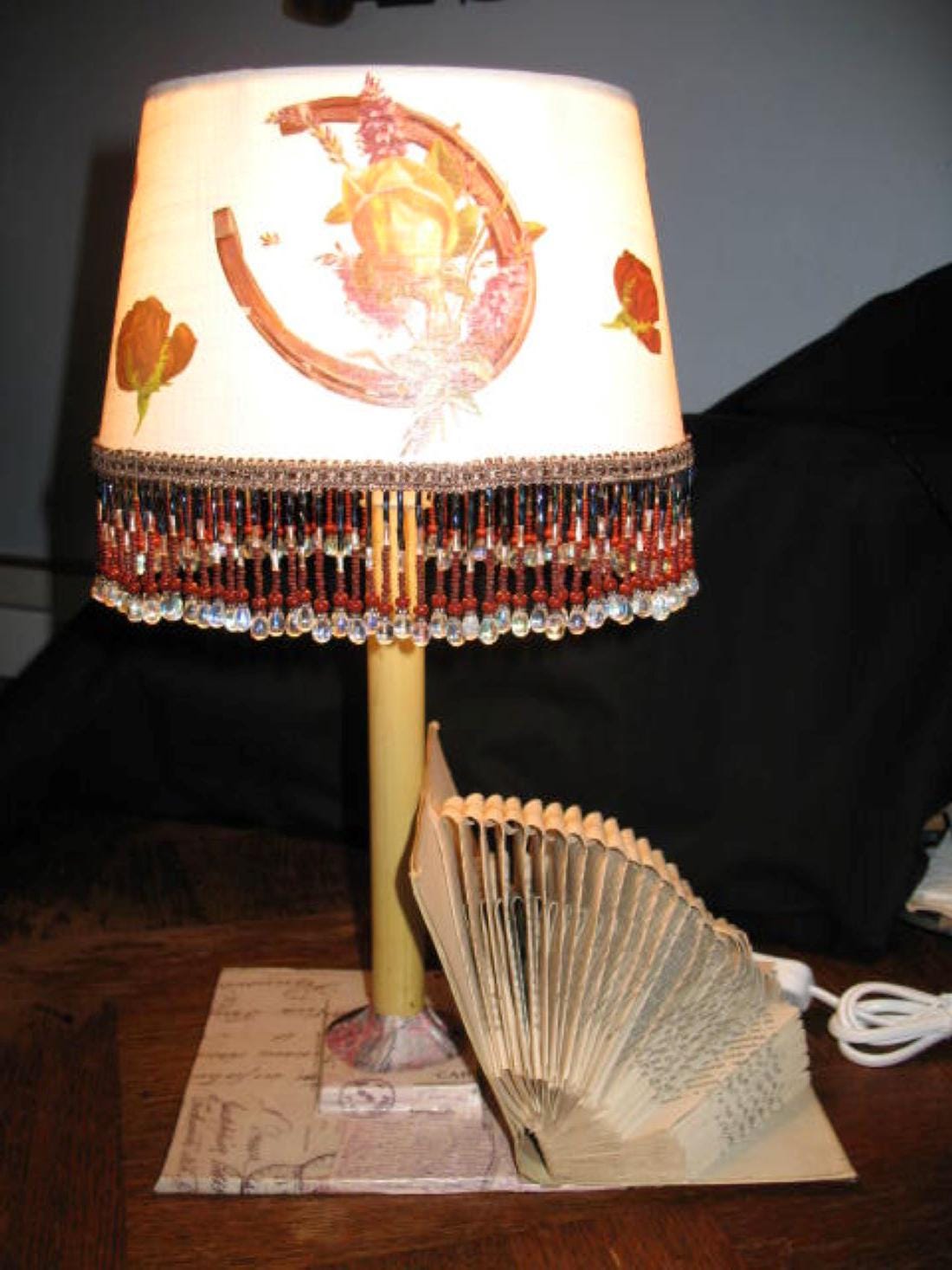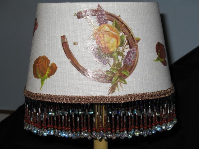 Je me suis inspirée des décors de lampes victoriennes qui sont ornées de magnifiques franges de perle. Loin d'égaler ce style, je m'y essaye.