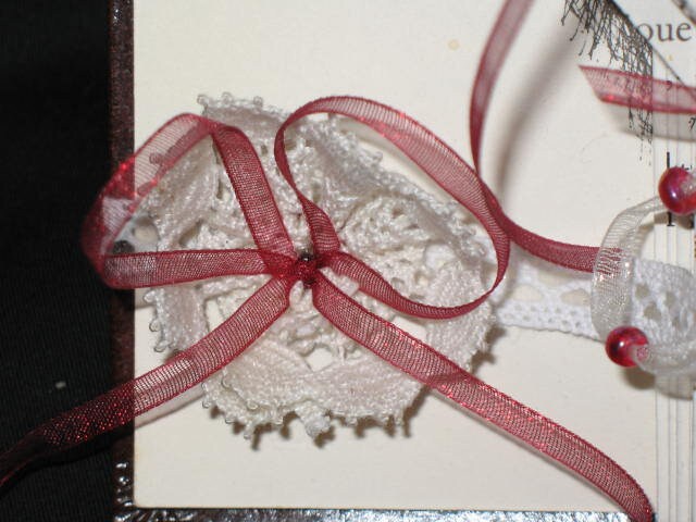 Décoré de dentelles, de rubans d'organza, et de perles rouges, il complètera les tenues des mariés. Il est livré avec sa boite décorée qui le protègera pour le conserver en souvenir ou pour poser le livre dessus ou se servir de cette boite comme rangement.
