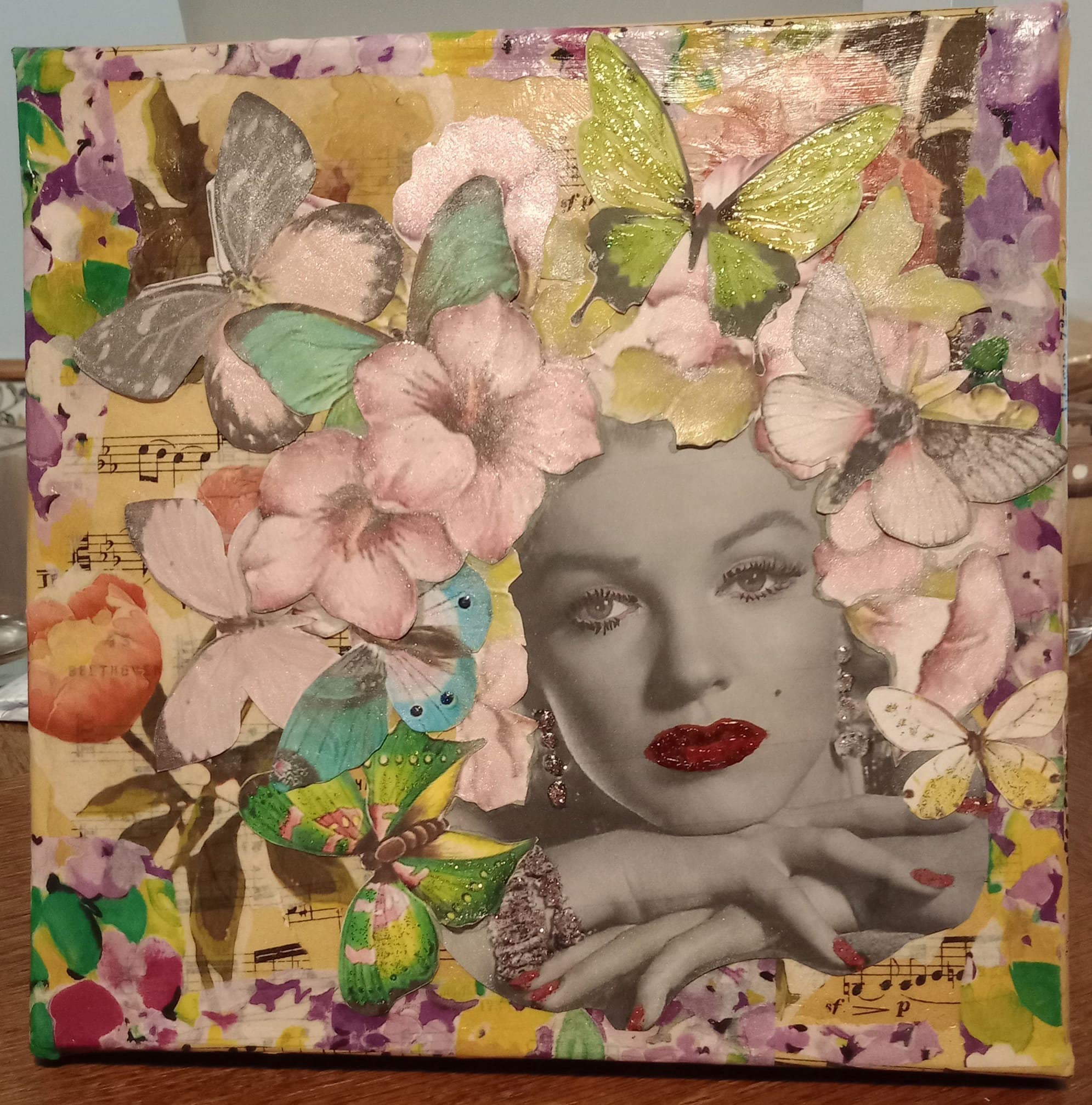 Collage papiers pour le fond et le relief. Photo de Marilyn en libre accès.
