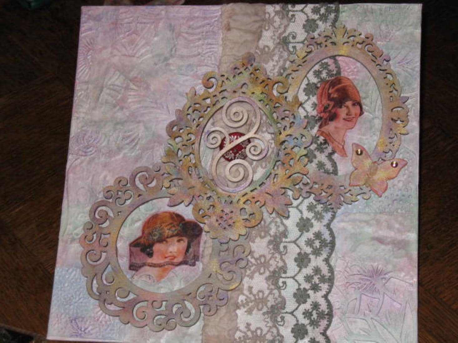 Tableau Collage sur toile: "Cadres & Dentelles" - à suspendre