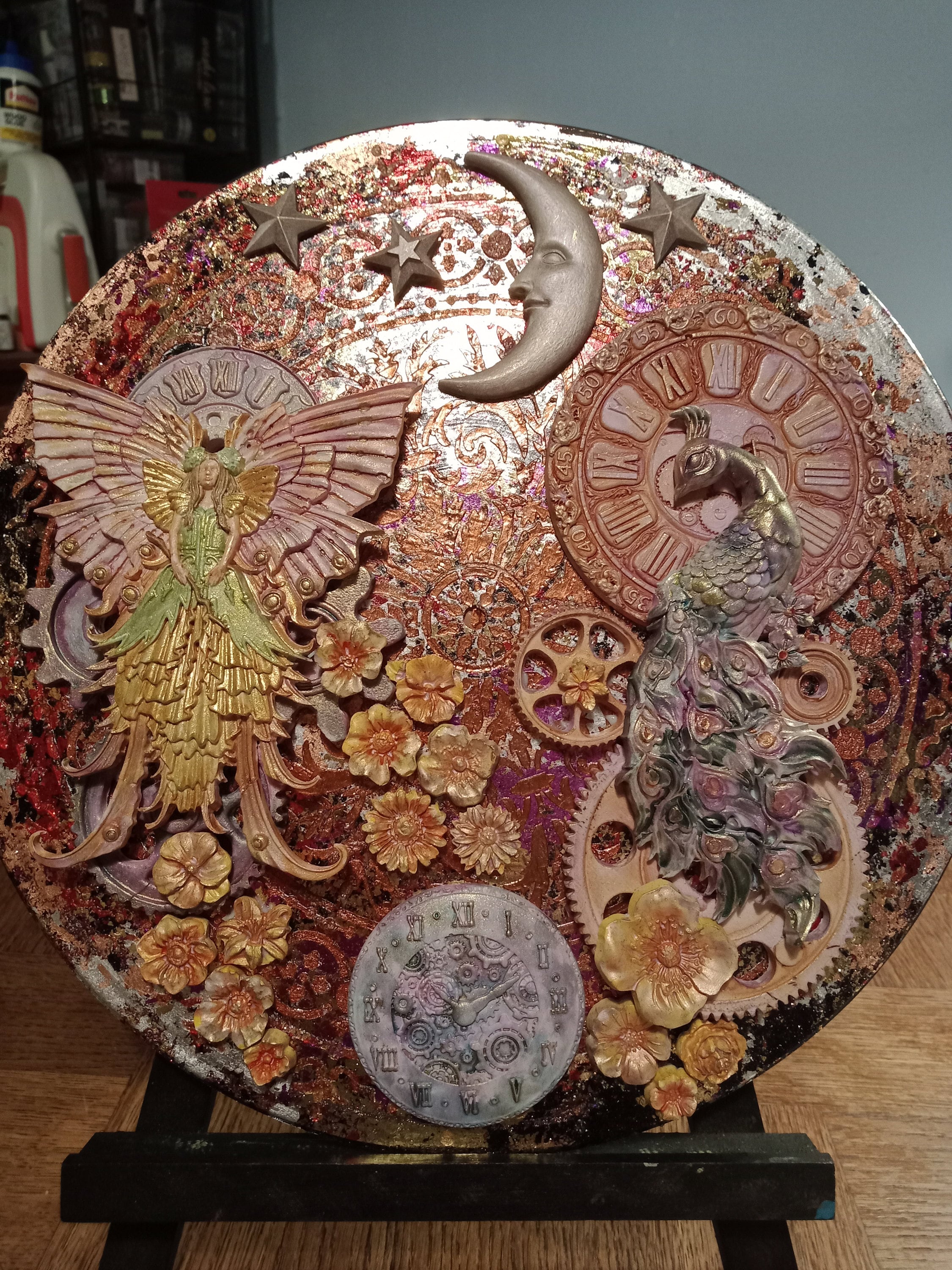 Je vous présente un nouveau vinyle 33 tours customisé. Il recherche sa famille d'adoption. On le place sur un chevalet, ou on le suspend. Il mesure 30 cm de diamètre. Un objet de décoration original à offrir ou à s'offrir.