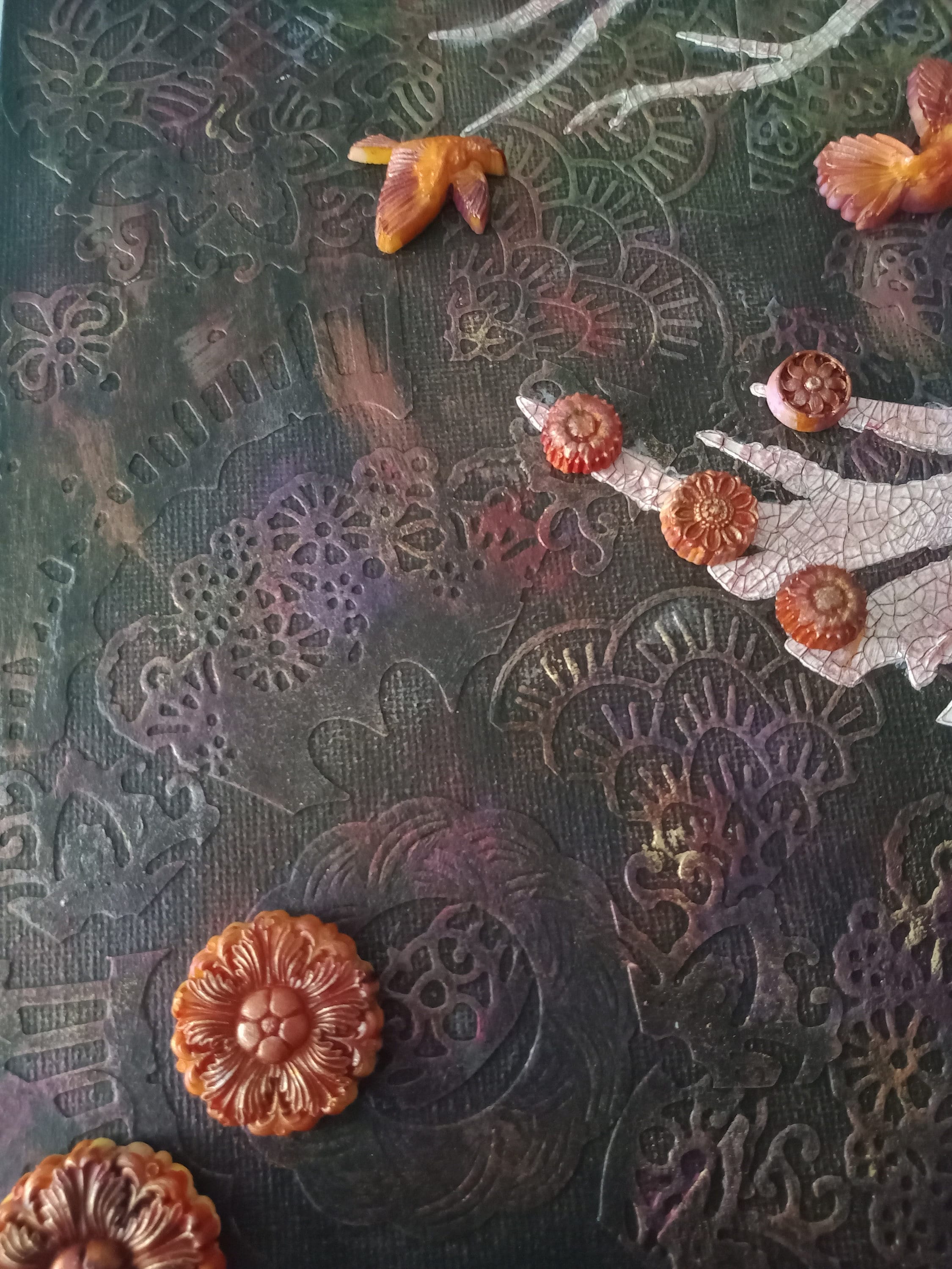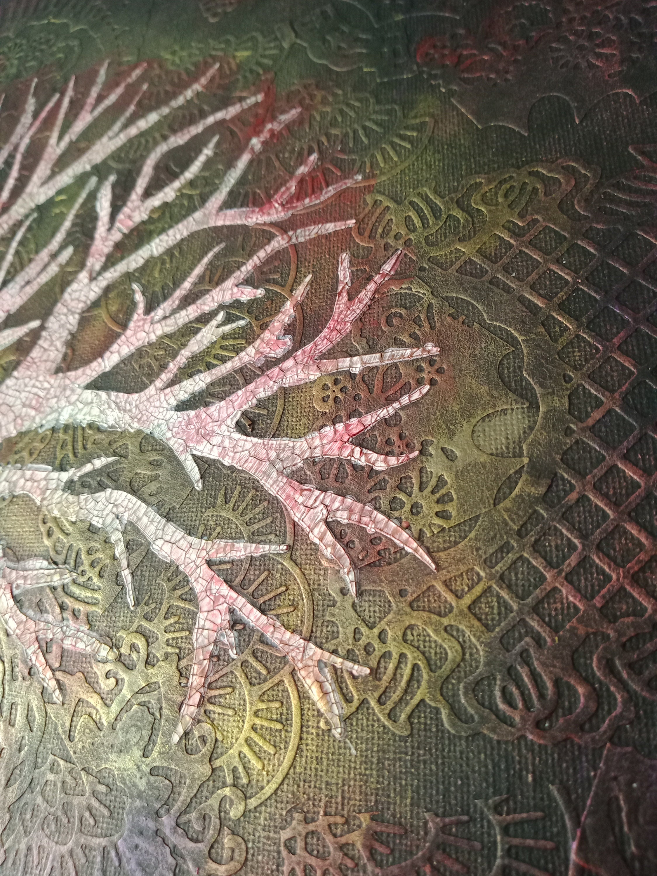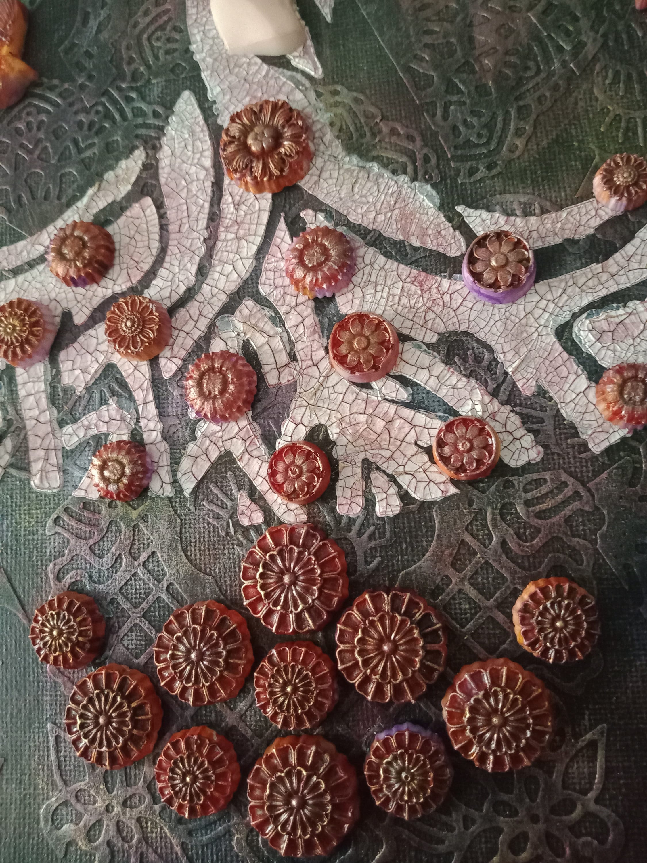 Tableau "Arbre de Vie au féminin" Mix media. Toile de 40 x 40 Nous puisons dans le sol des fleurs, et nous devenons des femmes pour être l'avenir de l'Homme. pate à structure, moulages, colorisation.