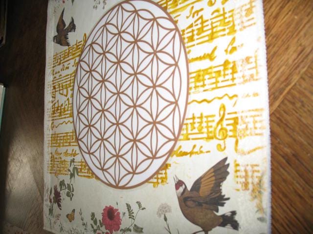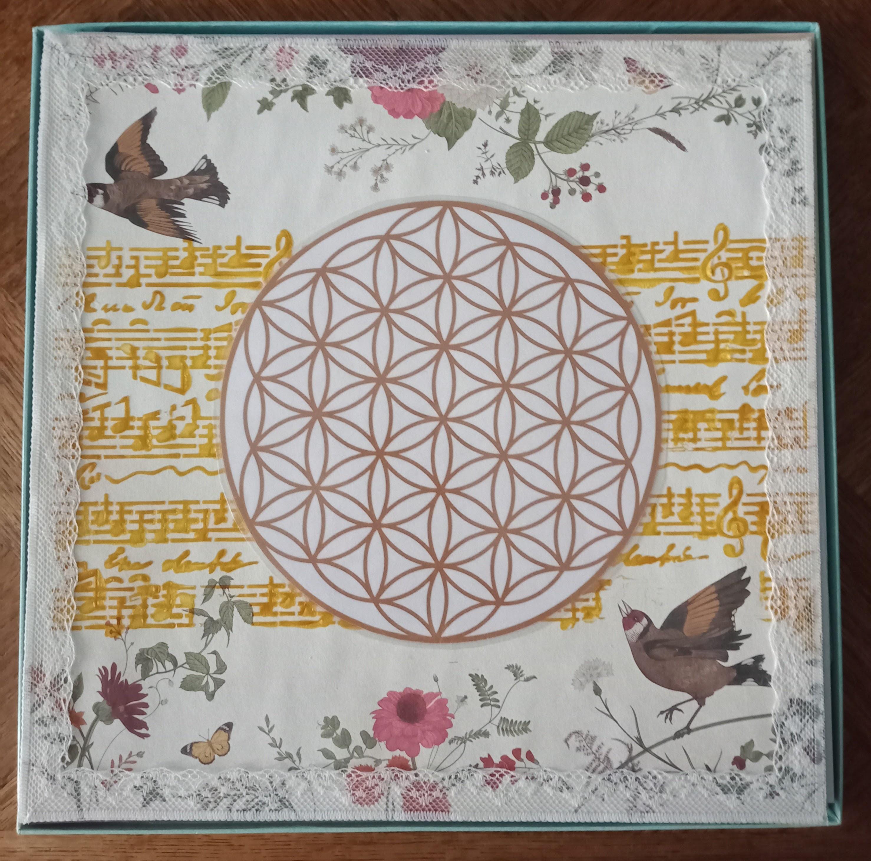 Staging of a Flower of Life. Dimensions in cm: approximately 30*30 I present to you this Flower of Life, arranged with birds and flowers. A hanging decoration. It can be used to regenerate your crystals in crystal healing and for many other purposes. ⤵⤵