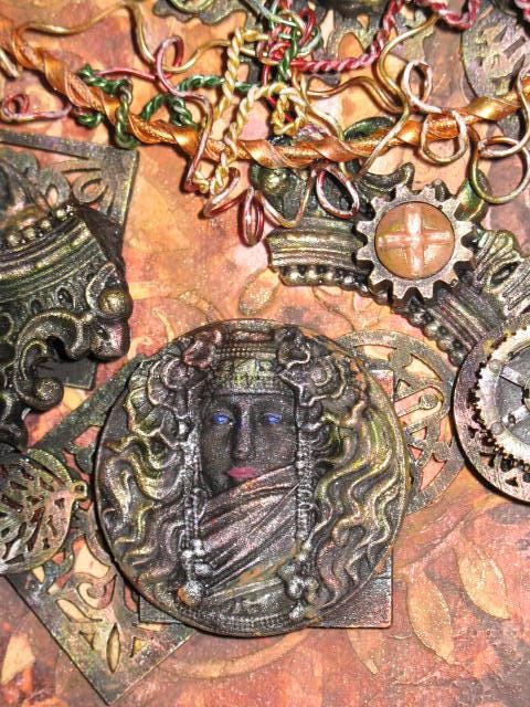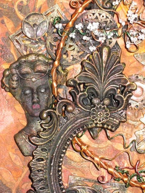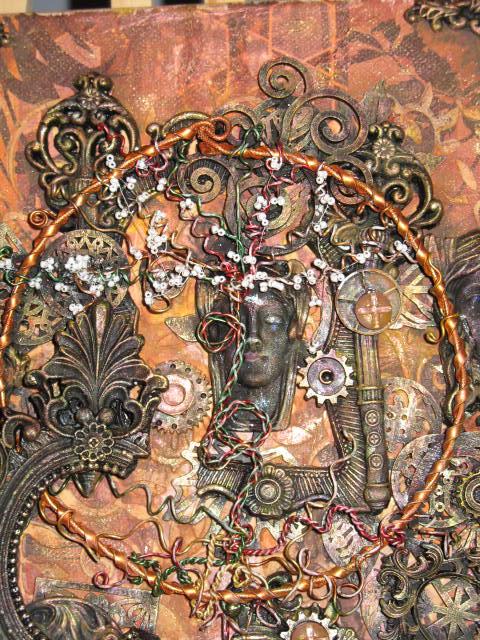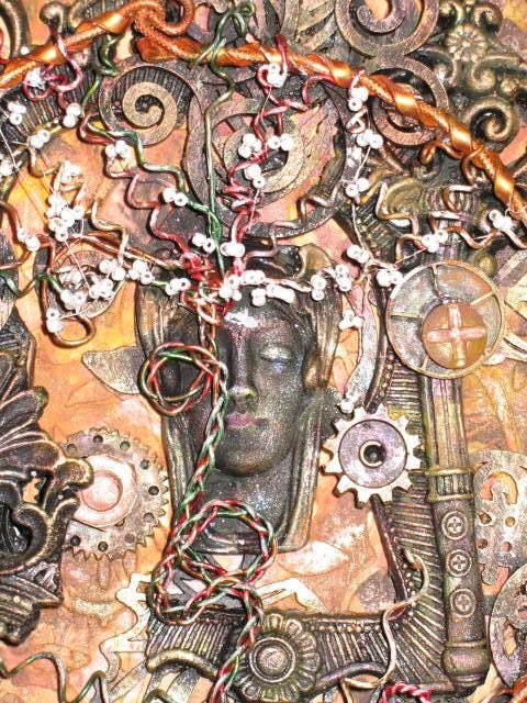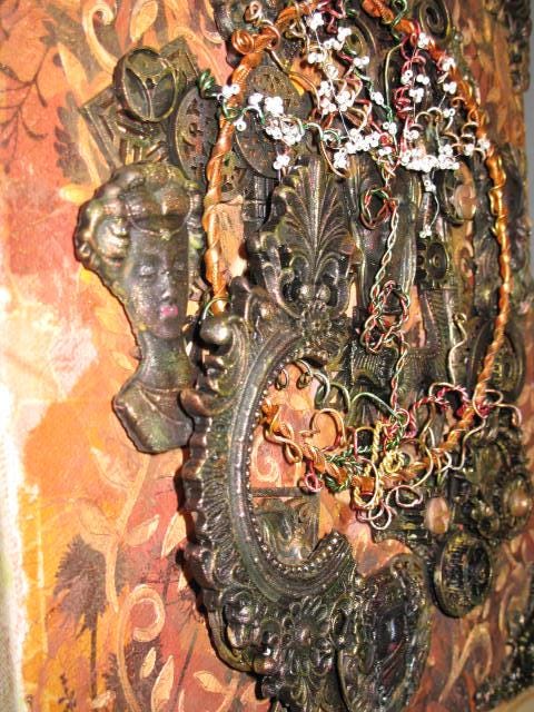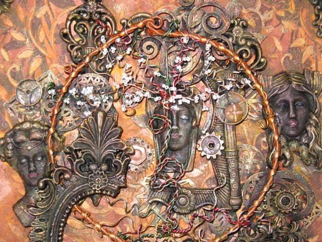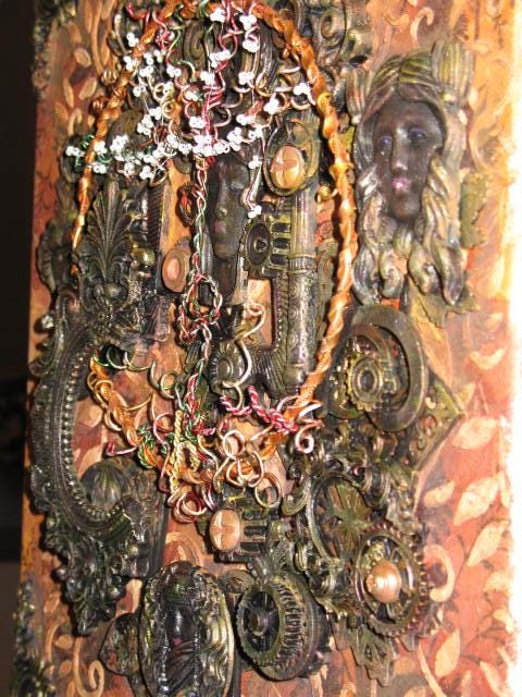 The painting evokes a sense of chaos, with its broken, blackened moldings. But the Tree of Life endures and heralds a possible renewal through all these portraits of women.