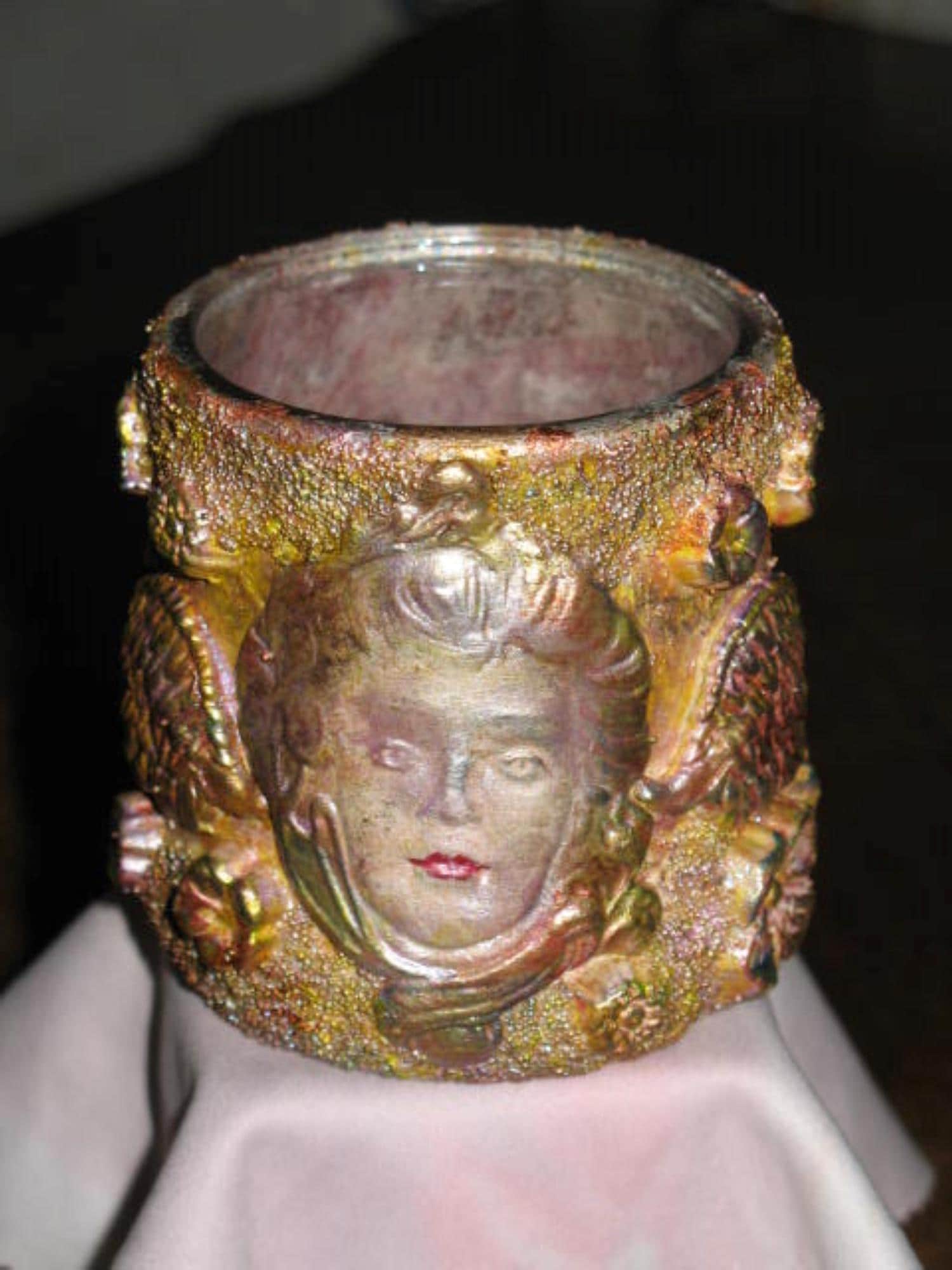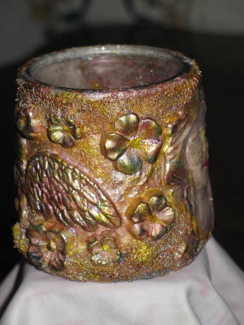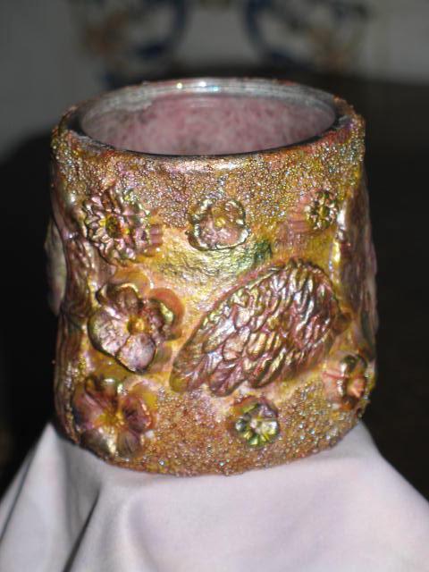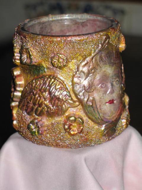 Original creation for this customized glass jar which will have several uses, as a vase, or catch-all, or pencil holder... or candle holder?