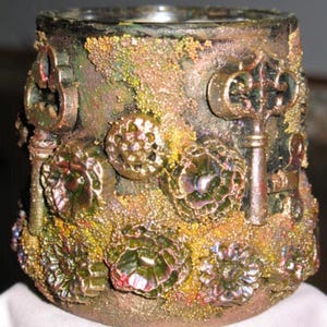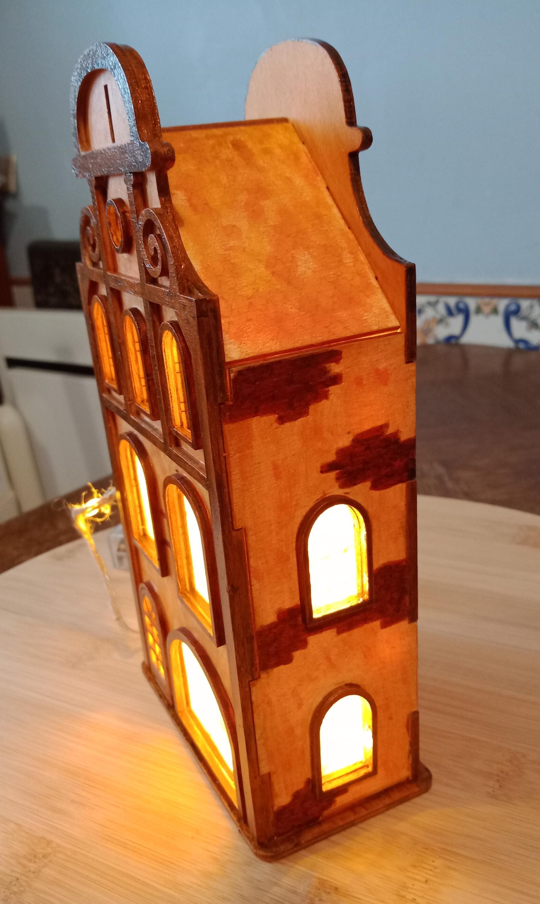 Tealight holder to light up your evenings or a corner of your home. Lighting by light garland operating with batteries provided. Made of wood decorated with acrylic paint and a floral design. Soft accent lighting. Dimensions: 20 x 11 x 6 cm It can be given as a housewarming gift, or for any other reason, or even as a gift to yourself.