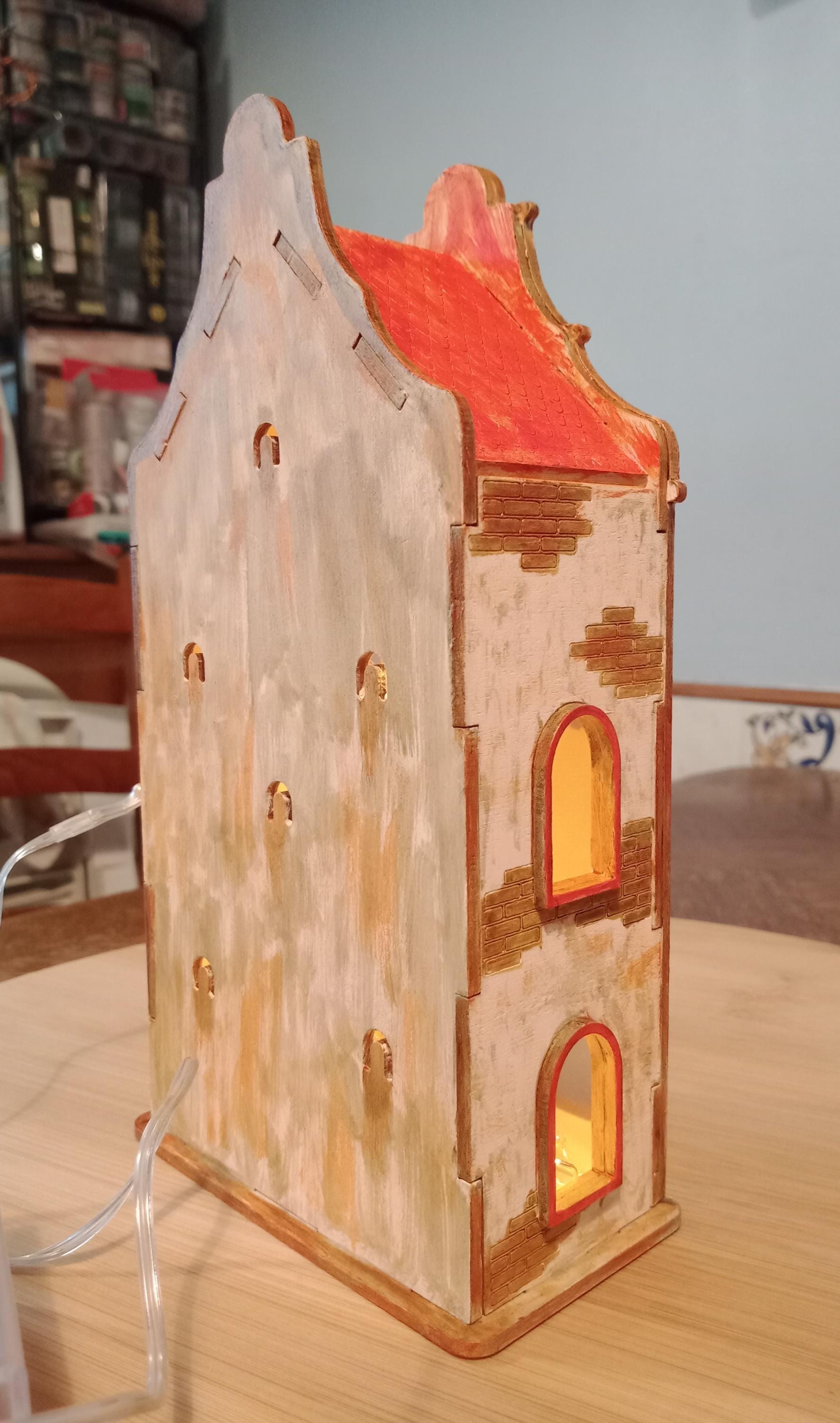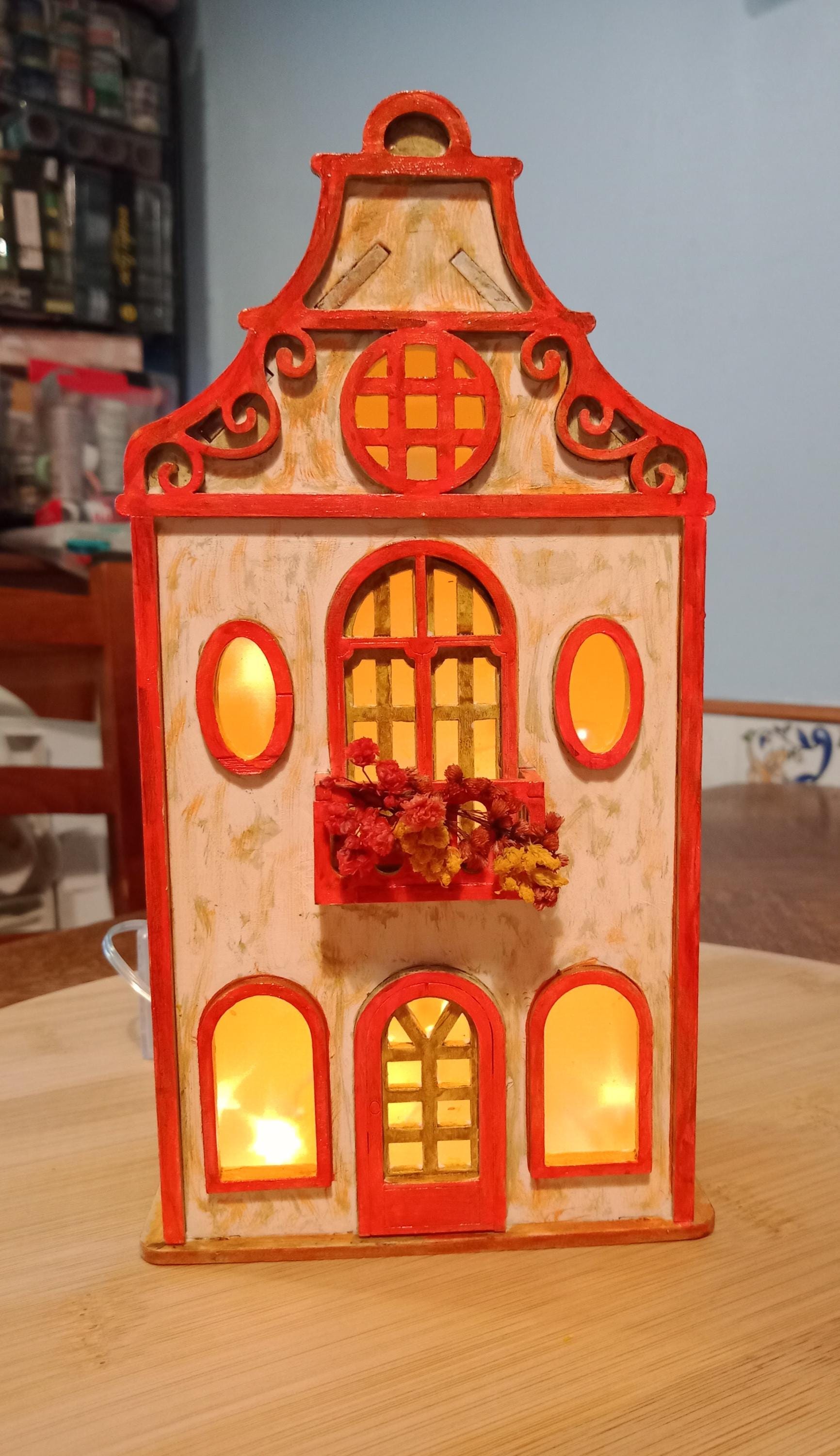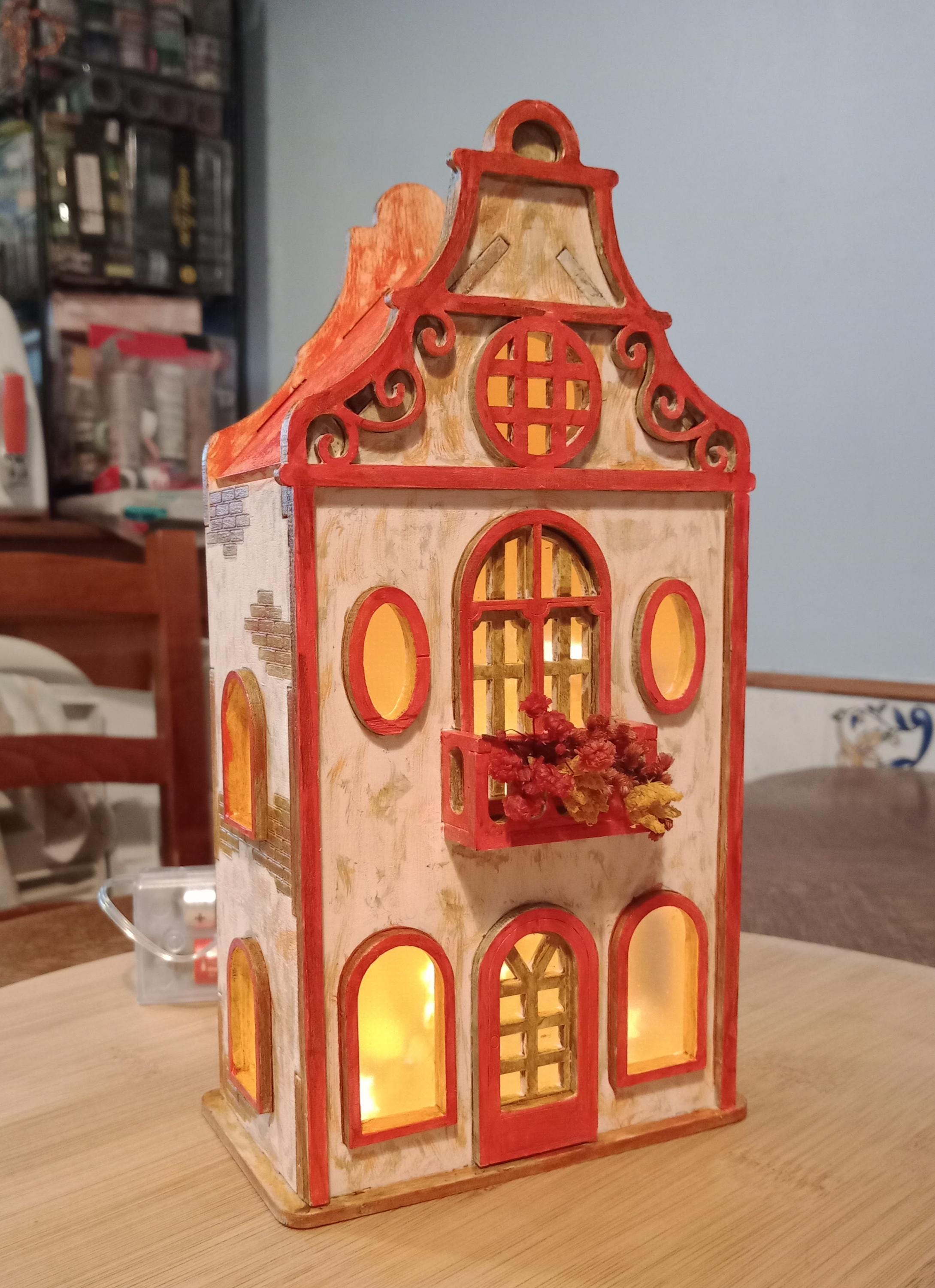 Tealight holder to light up your evenings or a corner of your home. Lighting by light garland operating with batteries provided. Made of wood decorated with acrylic paint and floral decoration. Dimensions: 20 x 11 x 6 cm It can be given as a housewarming gift, or for any other reason, or even as a gift to yourself.