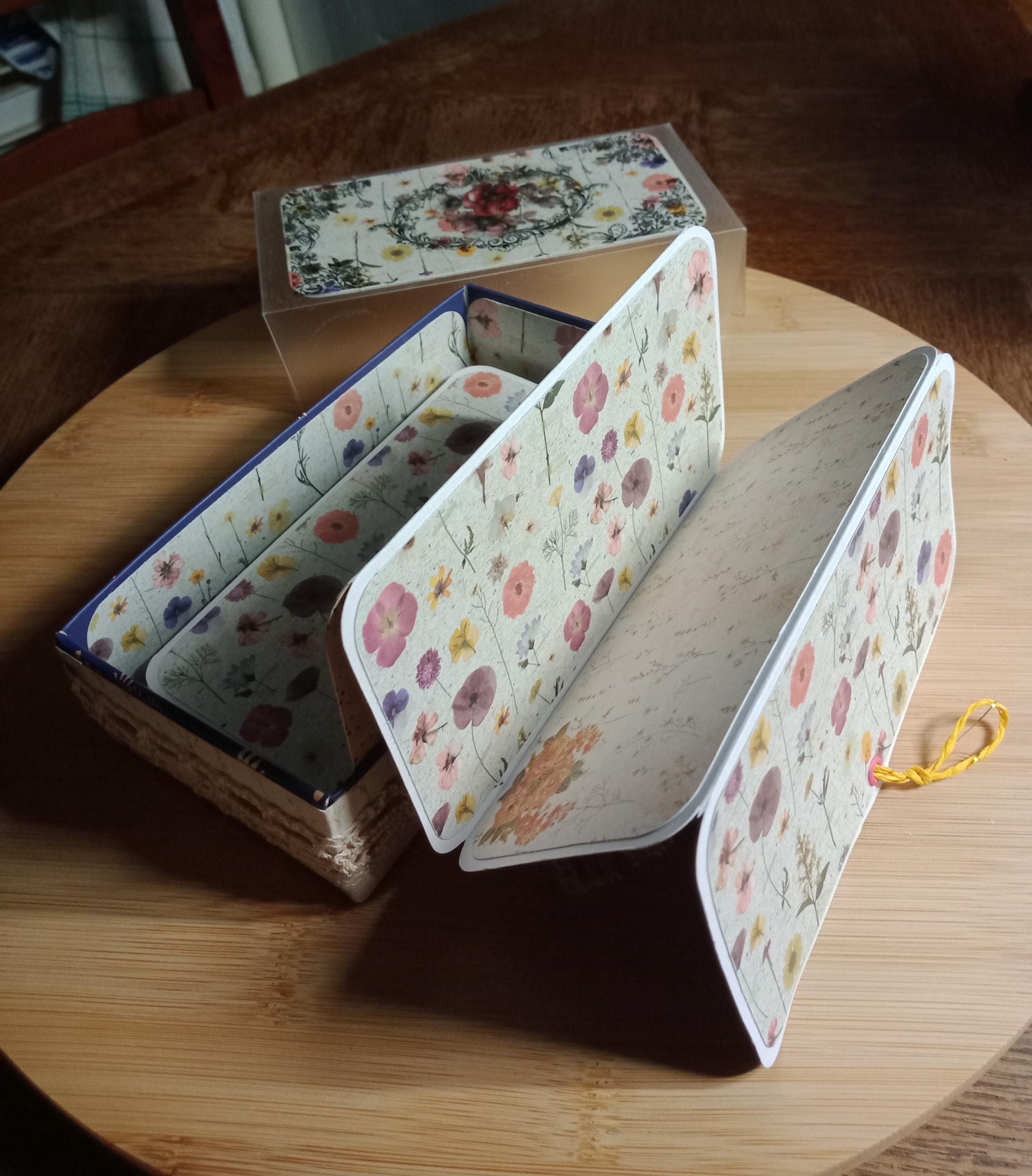 It consists of 21 cascading pages 15 x 8 cm, so it is possible to put at least 42 photos in it.