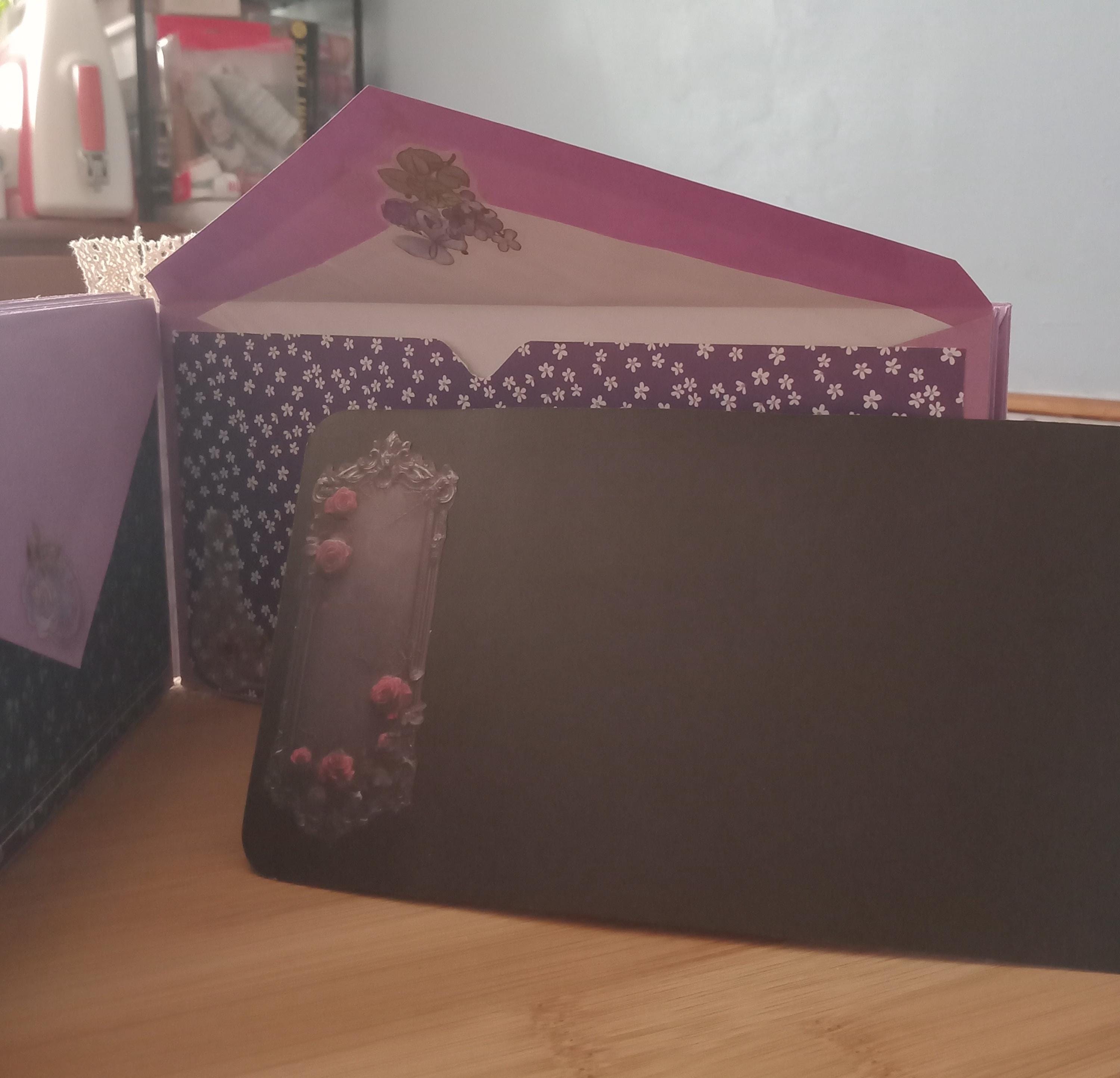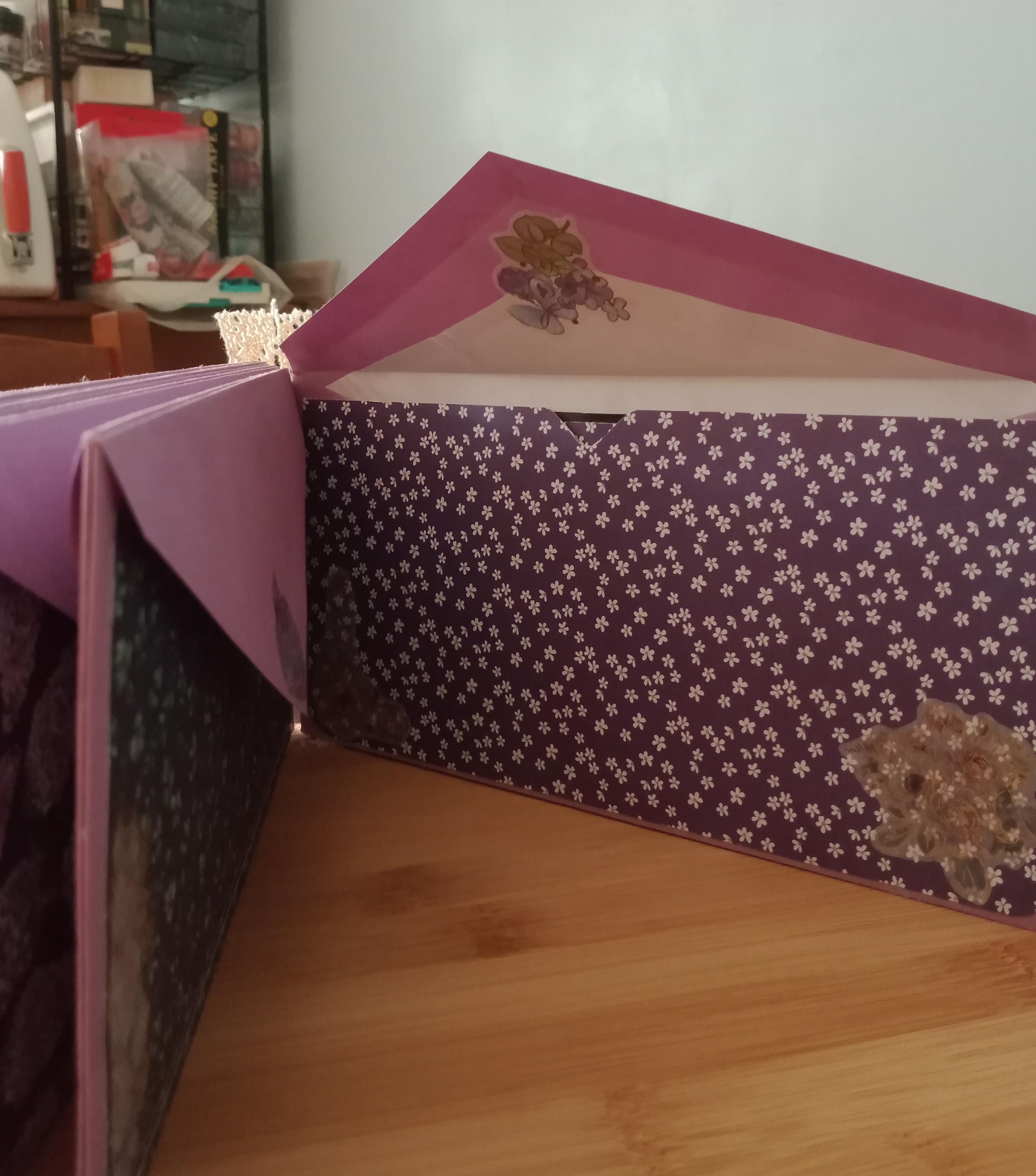 Photo album made with envelopes. Each envelope contains a "card" for at least two photos (front and back).