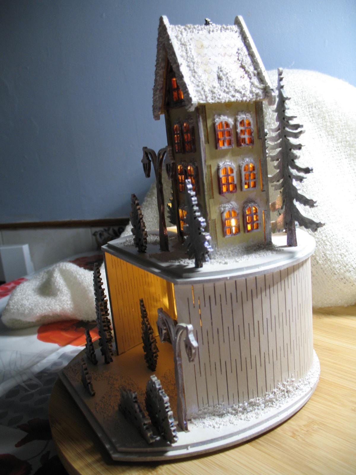 To decorate your home during this festive season. Contains a string of lights that operate on two included batteries. This candle holder is beautiful and original. Height 25 cm x 18 cm wide.
